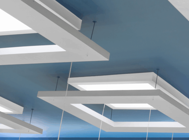 Designer ceilings with mood lighting to enhance atmosphere and aesthetics.